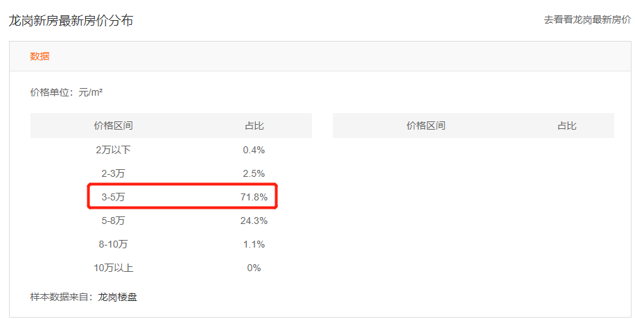 记者注意到,无论是30万元的首付款,还是单价3.01万元/平方米的单价,在深圳和龙岗都属于“地板”价。据安居客数据,目前深圳龙岗在售为157个新盘,平均价格在4.78万元/平方米,其中价格在3万元/平方米以上的楼盘占比超过7成。